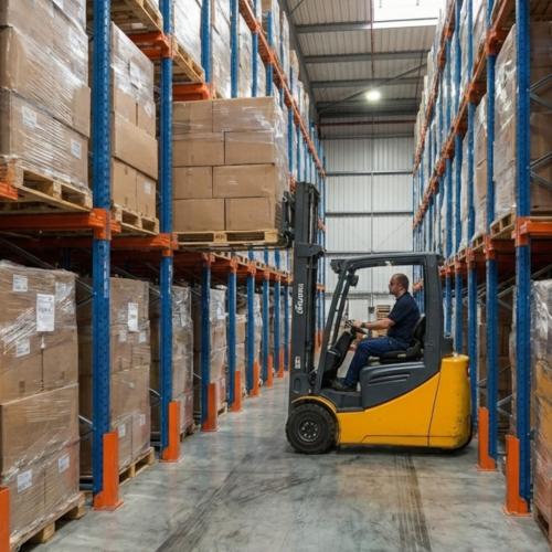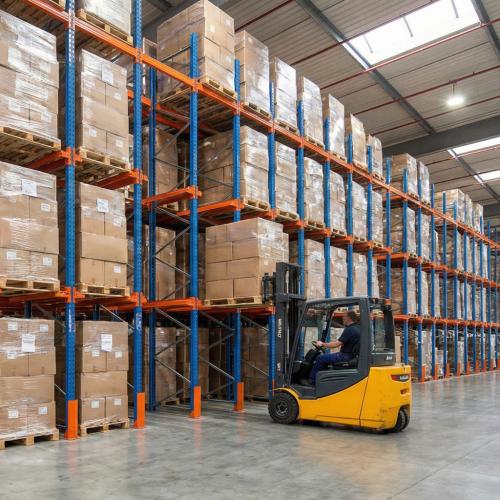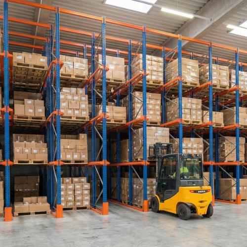 | Operasyonel Uyum | Forklift ile doğrudan rafın içine girilerek çalışılan bu sistem, blok depolama yapılan operasyonlar için idealdir. Aynı ürün grubunun toplu şekilde depolandığı ve belirli periyotlarla sevk edildiği depolarda operasyonel verimlilik sağlar. Forklift operatörü, raf kanalları boyunca kontrollü şekilde ilerleyerek yükleme ve boşaltma işlemlerini gerçekleştirir. |